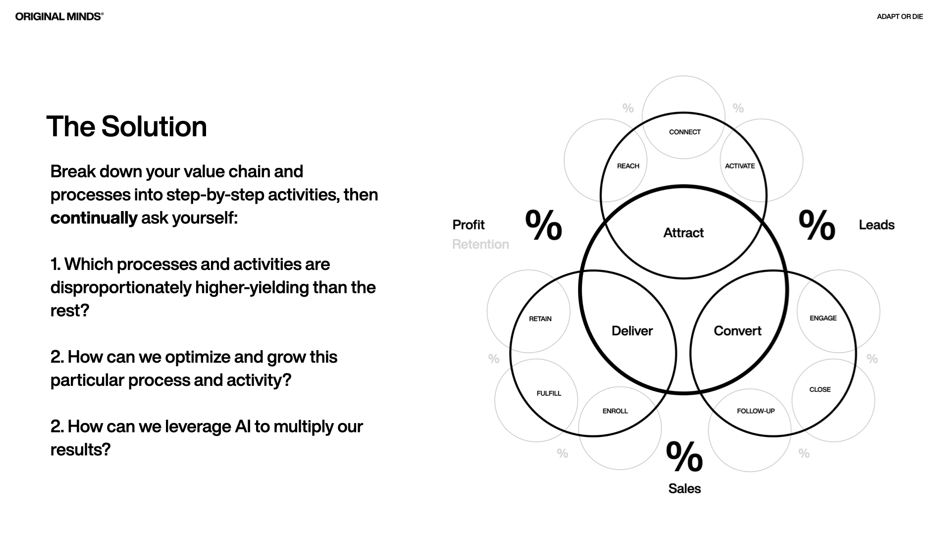 Main Topics & Content Ideas from the Talk The AI Imperative: Adapt or Die Why agencies and consultancies face an existential choice. The death of the “hours × people × rate” business model. AI as a nervous system of business (not just a set of tools). Linear vs. non-linear growth in the AI age. The Five Core Shifts Amplified Intelligence – AI as a creative partner, not just productivity. Revisiting Business Hypotheses – Questioning pricing, positioning, and offerings. Systems Before Scale – Why growth without systems = growing problems. The Money Equation – Six levers that determine profit. AI as a Growth Multiplier – Using AI across all six levers. The Money Equation 👉 Try the Calculator: originalminds.co/themoneyequation